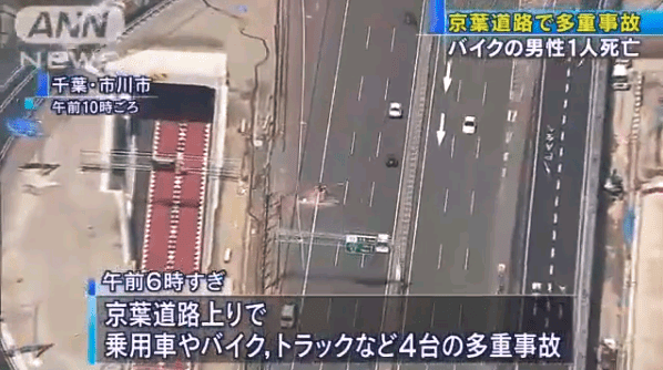 渋滞最後尾で4台絡む事故 バイクの男性が死亡 28日朝、千葉県市川市の京葉道路で乗用車やバイクなど4台が絡む事故があり、男性1人が死亡しました。 午前6時ごろ、市川市の京葉道路上りで乗用車やバイク、トラックなど4台による多重事故が起きました。こ… (出典:社会(テレビ朝日系(ANN))) |